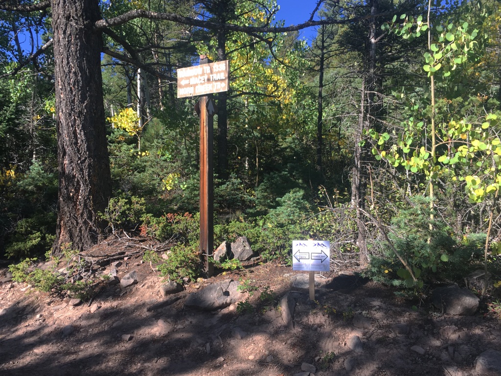 The only course markings! The laminated signs telling us where to turn off the Rainbow Trail |